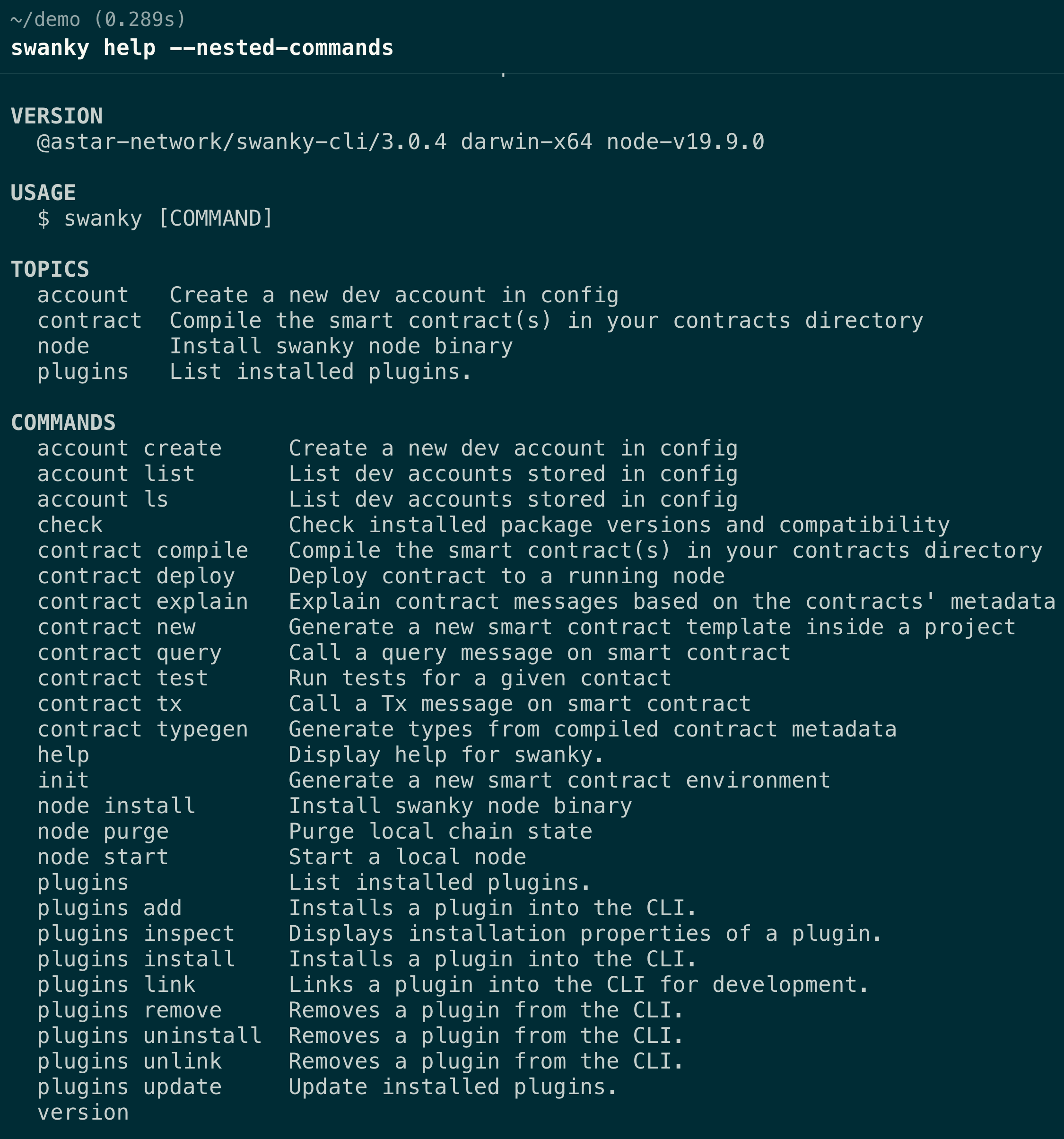 swanky contract SUB_COMMAND --help
